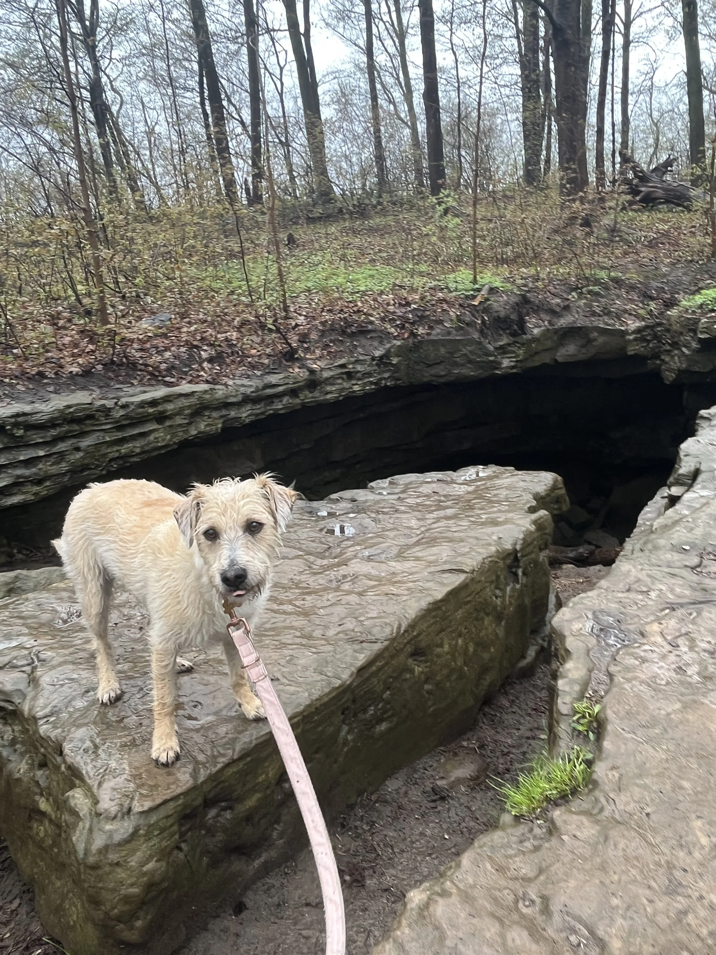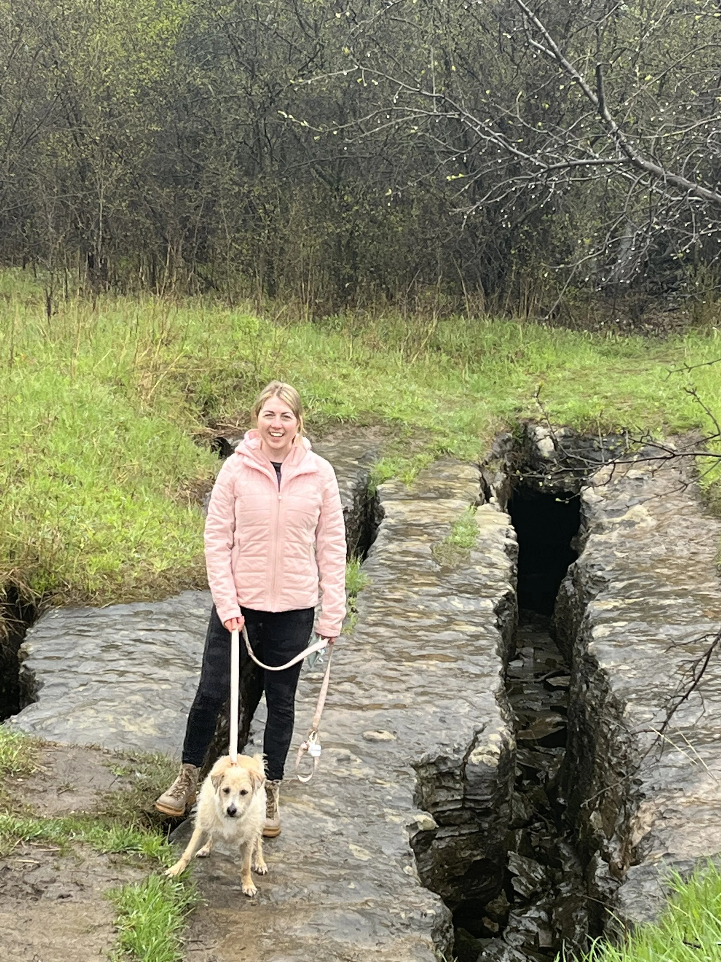 Eramosa Karst Remember limestone karst and clints and grikes from school? My memories were resurrected when we visited Eramosa Karst Conservation Area. With over 7km of trails through woodland, this is a nice dog-walking spot. We lifted a trail map on our way out to ensure we didn’t miss any of the limestone features. Most of these lie on the “Karst Features” trail. The most impressive were the Pottruff Cave and the Nexus Cave Windows. The only man-made feature is the Pottruff Homestead, ruins dating back to the 1800s. Be prepared to take some time to search for the features marked on the map.